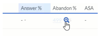 포기 간격 메트릭 보기는 대기열의 포기 기간에 대한 자세한 메트릭을 제공합니다. 특정 시간 동안 고객이 포기한 통화 수를 확인합니다. 예를 들어 6초 후 20초 전에 발생한 포기 통화 수를 확인할 수 있습니다.