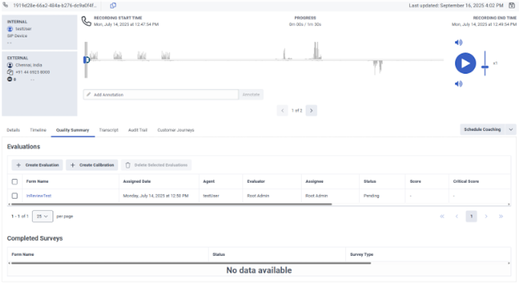 - 상호 작용을 평가하거나 평가를 품질 평가자에게 할당하려면 새 평가 추가.