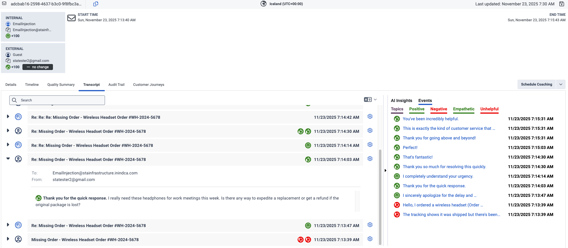 - 검토하려는 상호작용으로 이동합니다. 상호작용에 전사본(디지털 메시지 또는 이메일 본문)이 포함되어 있는지 확인하세요.